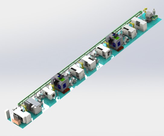 自动加工生产线,主要用于活塞加工和清洗的自动化机械加工。主要由物流系统、自动加工系统、后处理系统、自动控制系统组成一条完整的机加生产线。